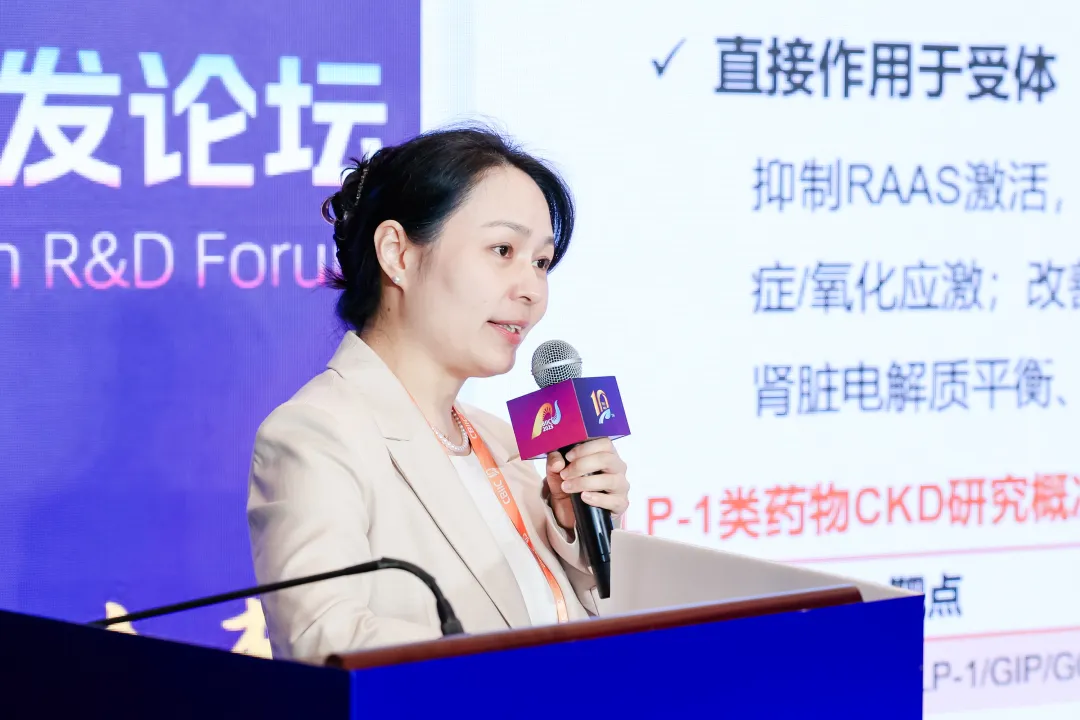 江苏恒瑞医药股份有限公司临床研发医学高级总监陈虹从宏观布局出发,阐释了在代谢领域深耕的战略考量,指出减重药物开发不仅仅减重,还在于治疗肥胖相关疾病,如MASH、心血管疾病和慢性肾病等,恒瑞已将研发版图系统性地拓展至慢病管线。在介绍其GLP-1/GIP双靶点药物(HRS9531)及口服小分子GLP1(HRS7535)等产品的研发进展时,也展望减重药物研发趋势,将从满足临床需求出发,提供更加精准化与个体化的治疗方案。