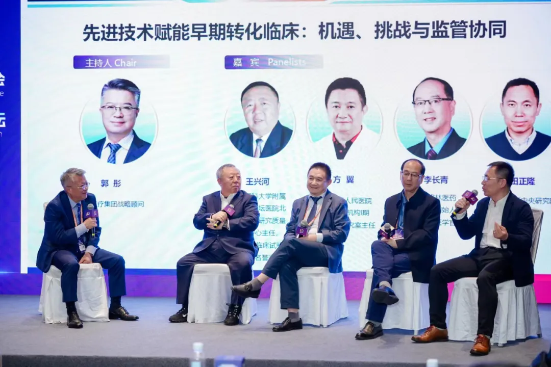 在论坛的最后,高博医疗集团战略顾问郭彤博士,北京世纪坛医院王兴河教授、北大人民医院方翼教授、埃格林医药李长青博士、上海医药中央研究院田正隆常务副院长共同探讨了818号令与GCP修订稿发布背景下,中国IIT与早期临床研究的机遇与挑战,充分展示了中国早期临床生态的多维思考:监管制度的前瞻、科学探索的底线、技术赋能的潜力与国际互信的追求,共同勾勒出在政策新周期下中国创新转化的现实路径与未来图景。